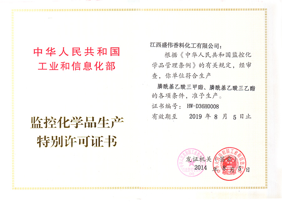 監(jiān)控化學(xué)品生產(chǎn)特別許可證
